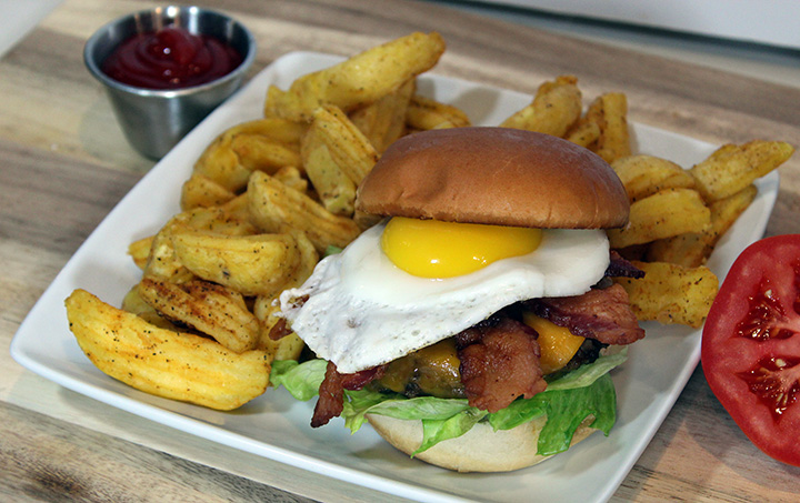 This is one of my absolutely favorite burgers, the Bacon and Egg Cheeseburger.